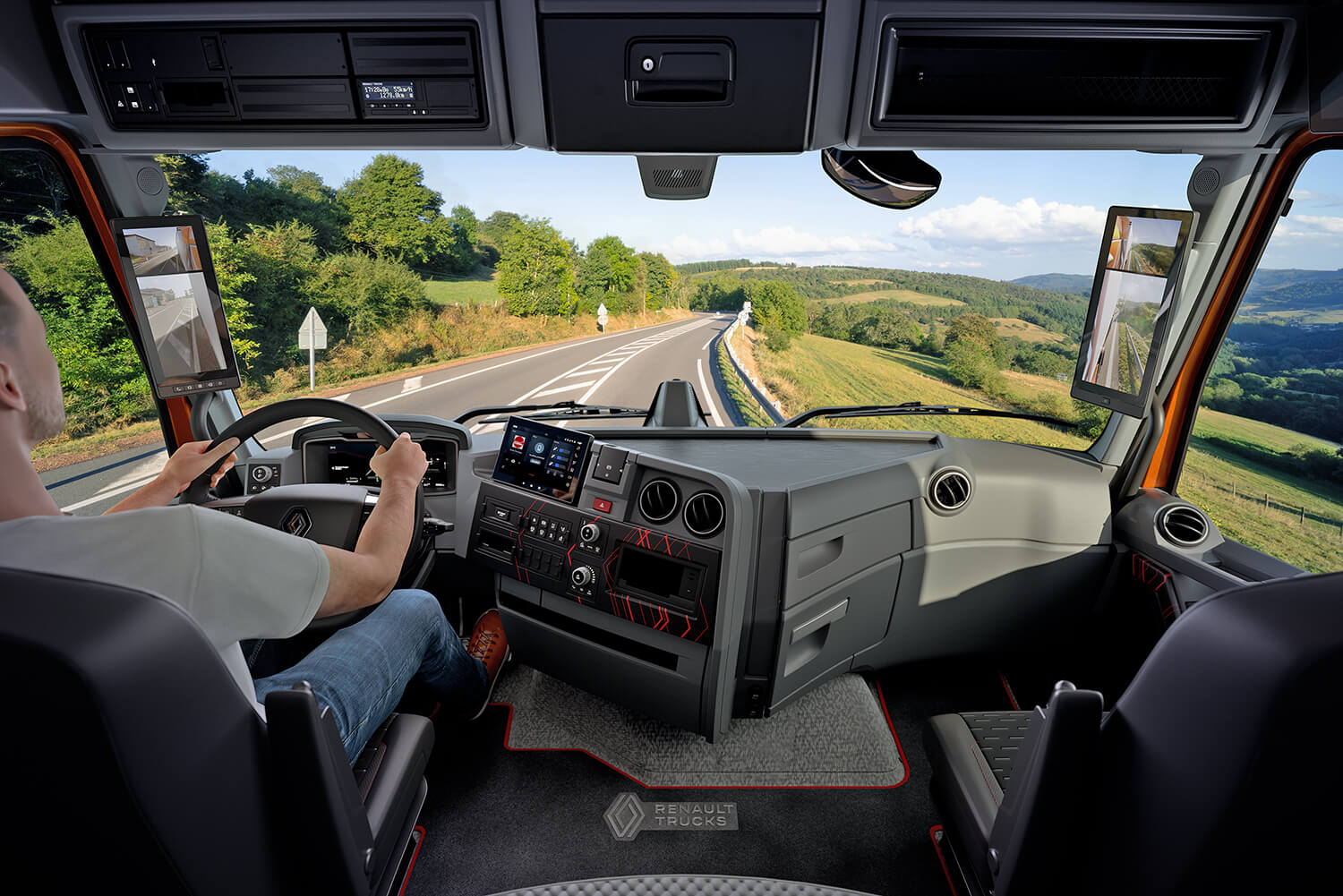 Modele Renault Trucks T, T High oraz Renault Trucks T E-Tech są teraz standardowo wyposażone w kamery zamiast lusterek wstecznych, co poprawia aerodynamikę i przyczynia się do zmniejszenia zużycia paliwa. Znajdujące się w składanych skrzydłach kamery do widzenia wstecznego są podłączone do dwóch ekranów w kabinie, które pokazują otoczenie wokół pojazdu, w tym tryb podczerwieni ułatwiający widoczność w nocy.